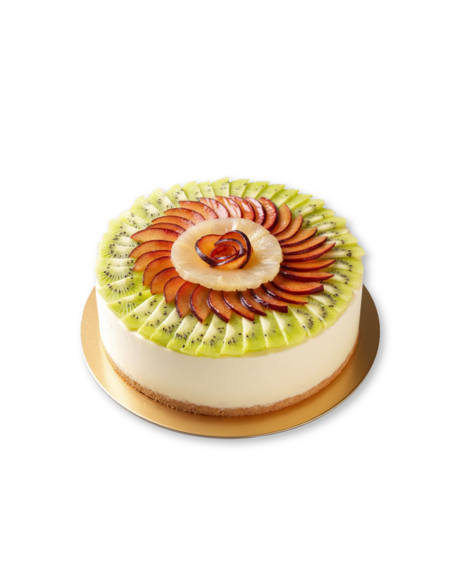 Made with an assortment of everybody’s favourite seasonal fruits, this colourful cake is filled and frosted with our fresh fruit cheesecake frosting and vanilla chiffon cake. Our Mixed Fresh Fruit Cheesecake is decorated with multiple rings of fresh fruits on the top.