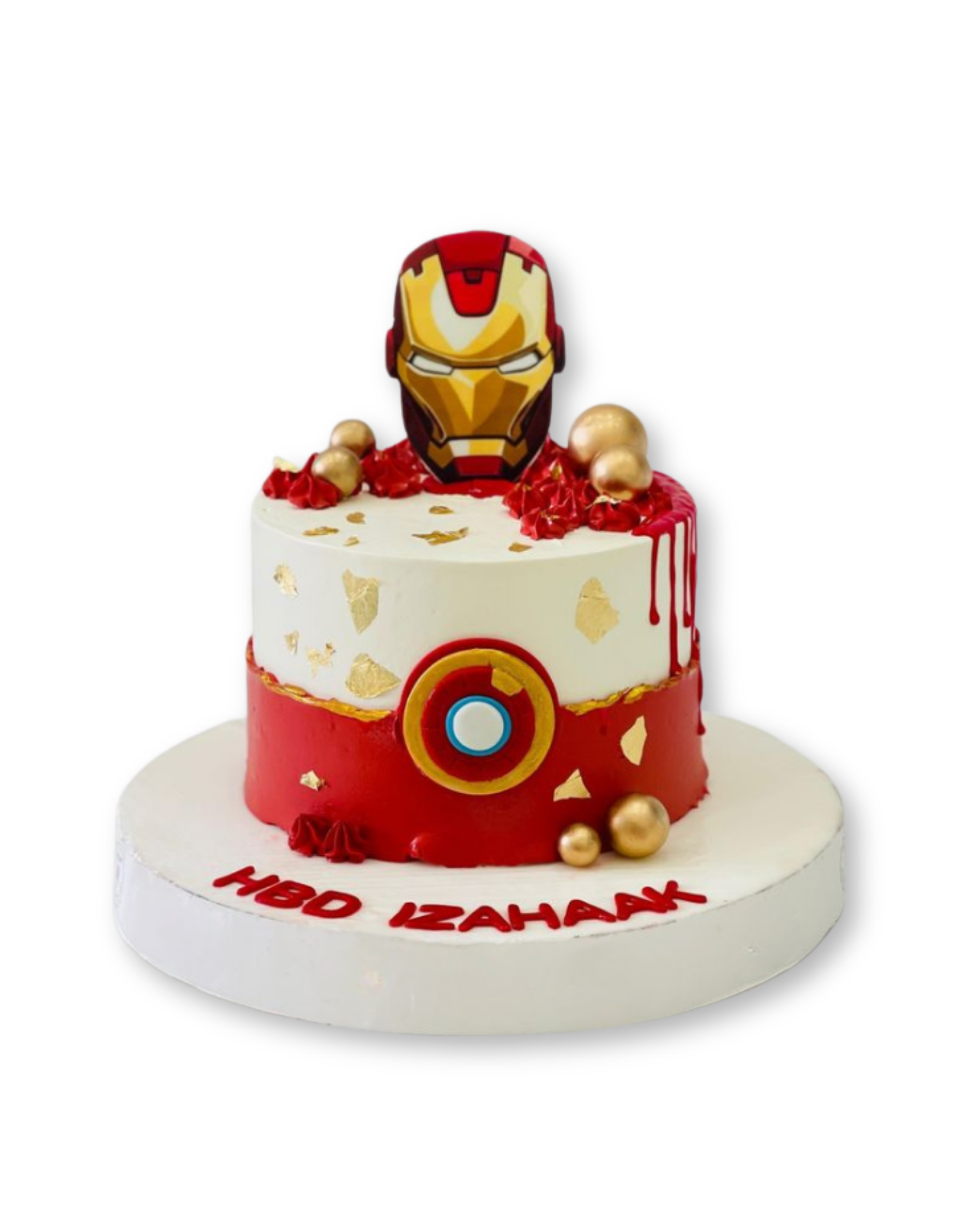 Celebrate your superhero fan with this striking Iron Man Cake, expertly crafted to capture the iconic armor's metallic gold and deep red design. Perfect for birthdays and special occasions, this showstopping cake combines impressive visual detail with delicious flavor.