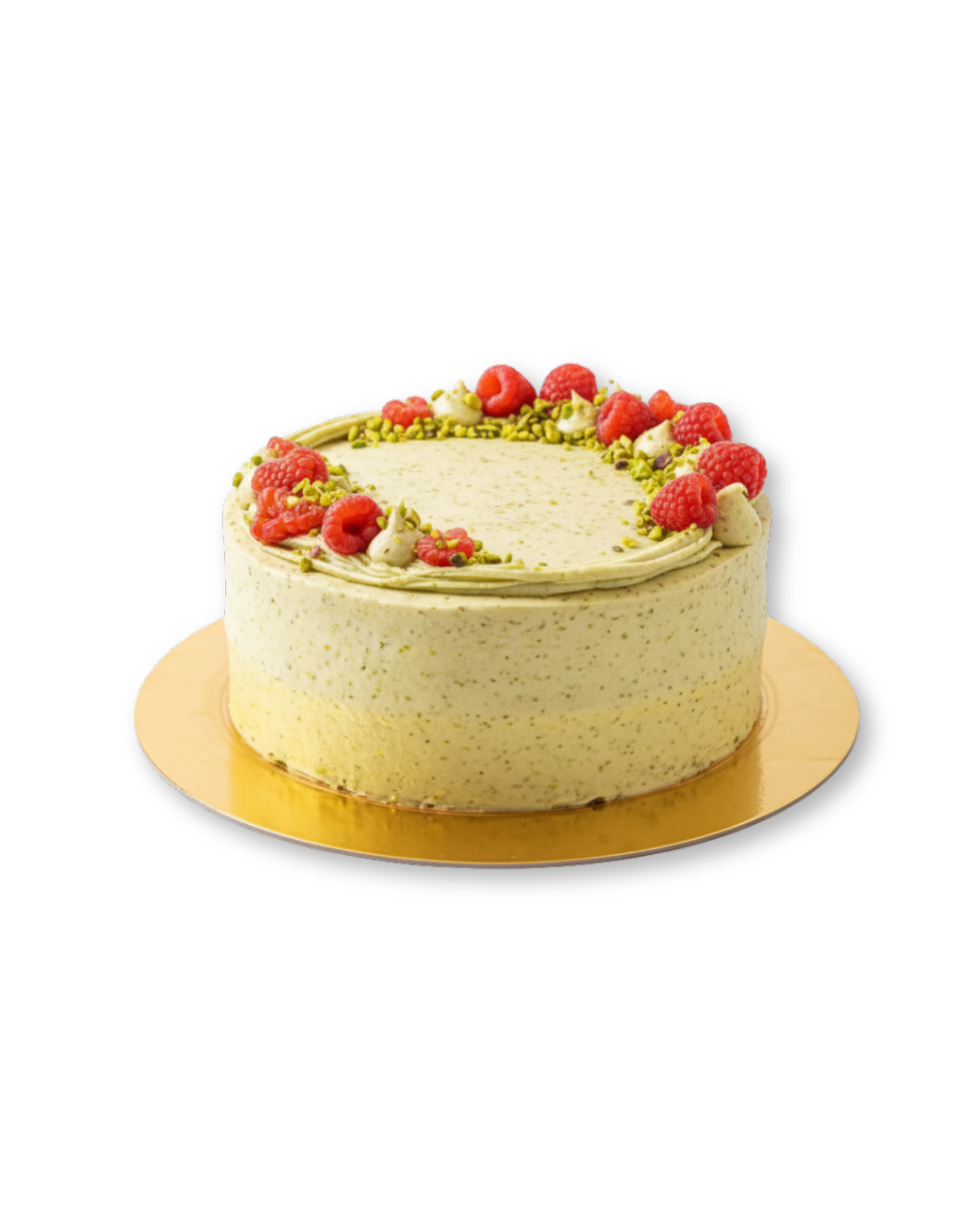 Indulge in the refined combination of tart raspberries and nutty pistachios with this expertly crafted cake. Each slice balances delicate layers of moist pistachio sponge with a vibrant raspberry filling, offering a harmonious blend of textures and flavors. Perfect for those appreciating sophisticated desserts, this cake delivers both elegance and a distinctive taste experience.