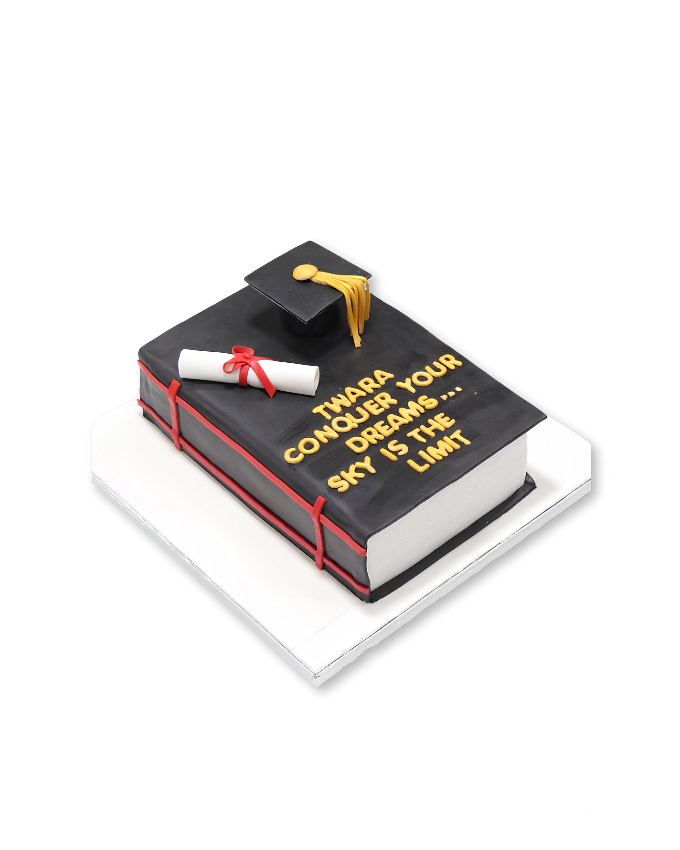The Graduate's Book Cake is a sophisticated celebration dessert designed to honor academic achievement. This intricately crafted cake features an open-book design with fondant pages, perfect for commemorating graduation milestones. Each tier combines premium vanilla or chocolate sponge with smooth buttercream frosting, while edible details capture the essence of scholarly accomplishment.